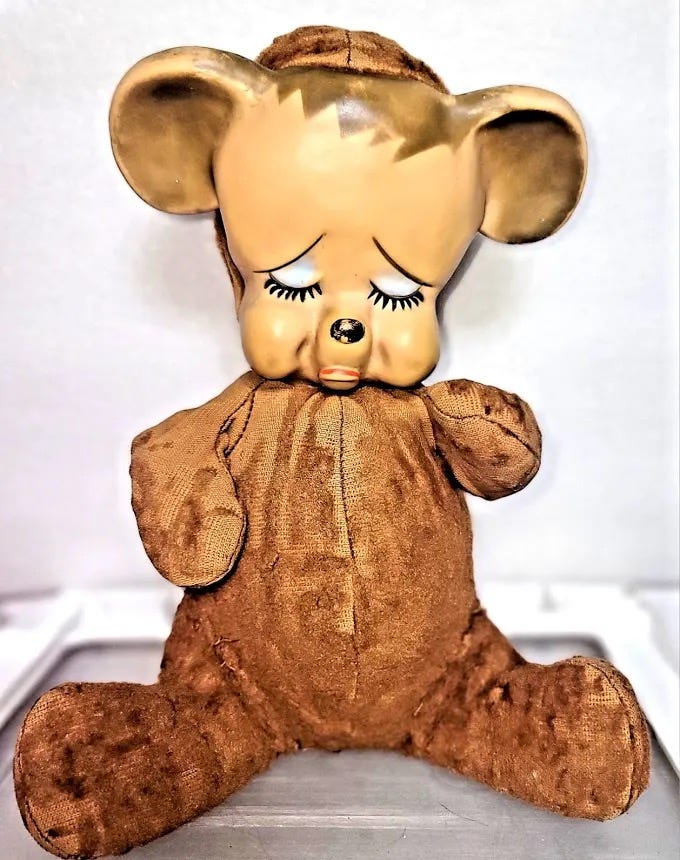 Note: The photos of Poutsy and Happy shown above aren’t my original childhood toys. Since I no longer have my originals, I found these nearly identical models being sold by someone else to provide a visual of the "friends" who shaped my early emotional world.