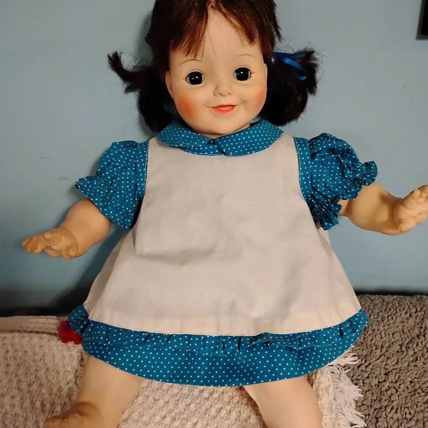 Then there was Happy the Doll: a "fancy" Christmas gift. She was a beautiful, well-dressed, and expensive Madame Alexander doll—the kind you’re told to keep on a shelf so she doesn’t get "ruined" by actual love. I ignored those instructions immediately.